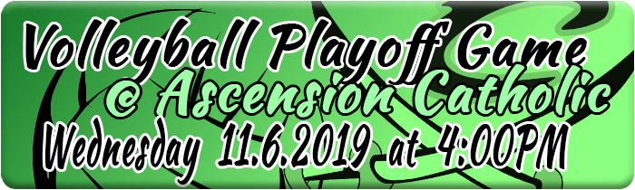 Calvary Volleyball Playoff game this Wednesday, November 4, 2019 at Ascension Catholic.