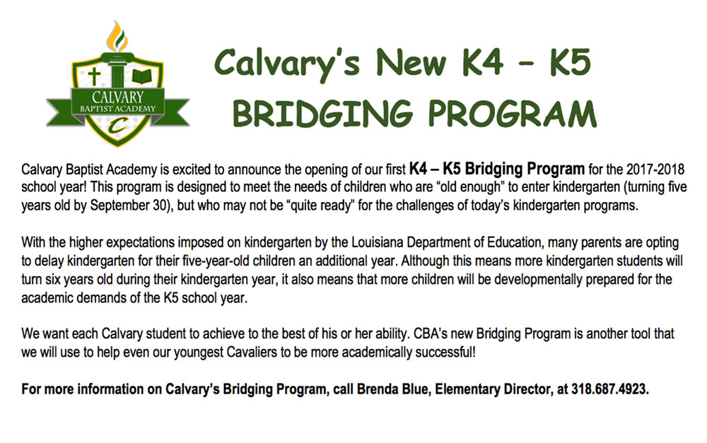 Brookshires is supporting CBA with a Cash for your Class program which gives a percentage of the money you spend back to Calvary. When you go through the checkout line at Brookshires, just tell the cashier that you are from Calvary or mention the Cash for My Class program.